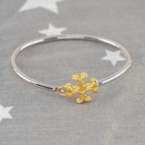 Tory Burch Eleanor Hinged Cuff Bracelet in Tory Gold / Tory Silver (Brand New)