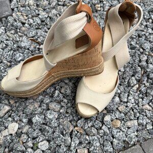 Step out in style with these elegant cream wedge sandals. Perfect for any occasion, these shoes offer both comfort and sophistication.