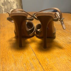 Step out in style with these elegant tan and black women's heels. Perfect for any occasion, these shoes offer both comfort and sophistication.in good condition