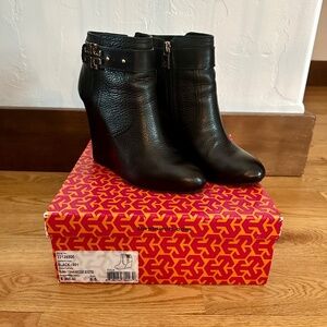 Tory Burch Leather Boots in excellent condition. Worn only a handful of times to work, but unfortunately, my feet are too wide for this style. :( They've been sitting in my closet since. (with original box)