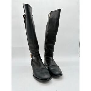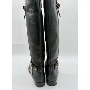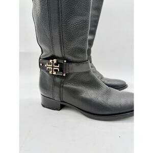 Tory Burch Elina Tall Black Textured Pebbled Leather Riding Boots Women's 7.5