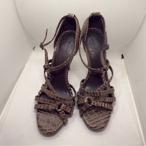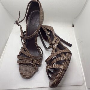 Tory Burch Elizabella Italian Croc Heeled Strappy Sandals US 7