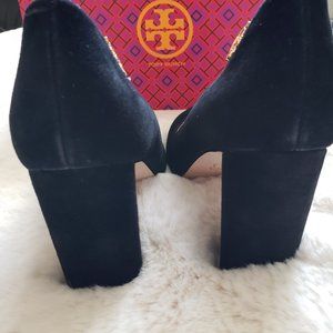 Tory Burch Elizabeth 85mm Round Toe Suede Pump Black Size 5.5M