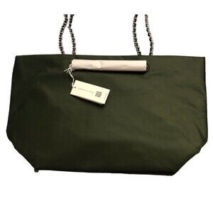 Tory Burch Ella Logo Chain Recycled Nylon Tote Shopper In Olive Green New