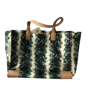 Tory Burch Ella Logo Prints Large Nylon Tote Rayure Fleurie New w/tag Authentic