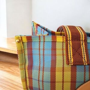 Add a bold burst of color to your everyday look with this Tory Burch Ella Market Tote from the coveted Spring/Summer 2022 Collection — a limited-edition release featuring a vibrant woven plaid design. Warm sunset tones of yellow, turquoise, and rust bring playful energy to this versatile carryall, while signature Tory Burch luxury details elevate the look.
