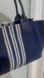 Large Ella Canvas Tory bag navy shoulder bag with black handles. Features a stylish woven center stripe. There are some long water like mark in front and back of the bag , some minimal stains on the exterior but the inside is clean, the leather in the exterior only has some scratches.