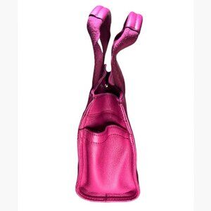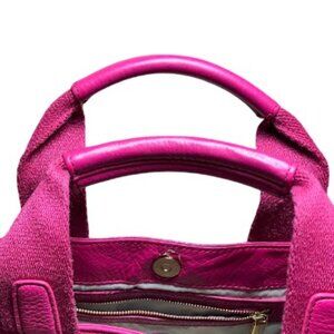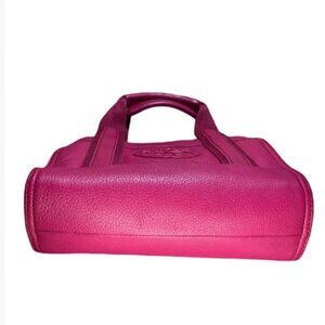 Tory Burch Ella Small Leather and Canvas Logo Embossed Tote in Magenta EUC