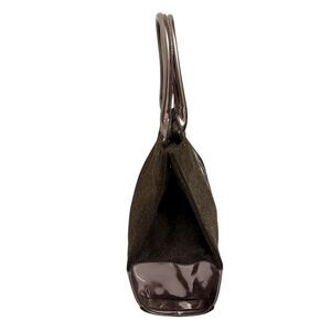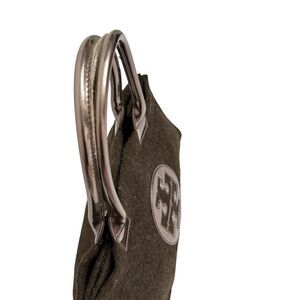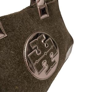 Tory Burch Ella Tote Bag Brown Felt Wool w Detail Metallic Patent Leather