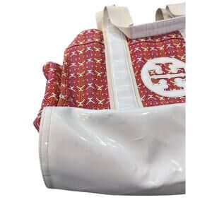 Tory Burch Ella Tote Bag Pink Orange White Patent Preppy