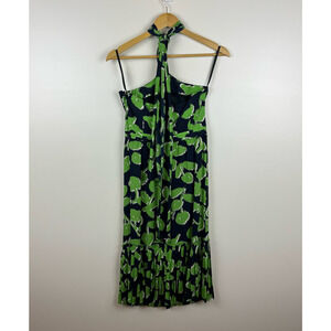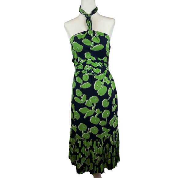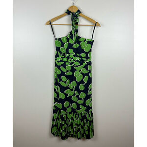 Tory Burch Eloriane Green Halter Neck Floral Silk Midi Dress Size 2