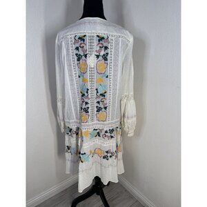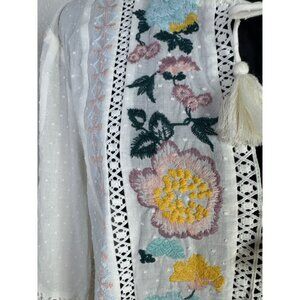 Tory Burch Embroidered Cotton Boho Dress With Tassel Tie & Lace Detail