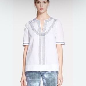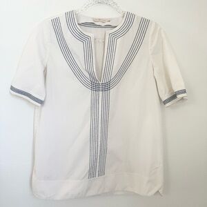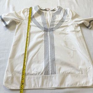Tory Burch Embroidered Poplin relaxed Tunic White & Navy Details Cotton Size 2