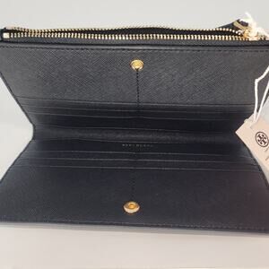 Aesthetic Tags: Classic, Minimalist, Luxe, Functional, Everyday, Designer, Saffiano, Black, Tory Burch, Careerchic, Career, Workwear, Wallet, Clutch, Luxury, Formal, Gifting, Present, Mother's Day