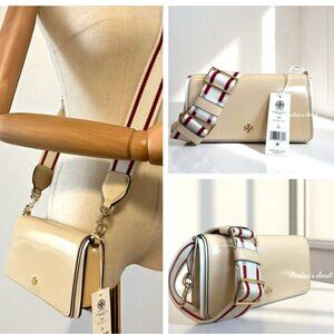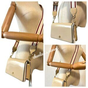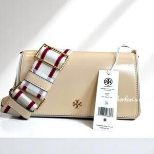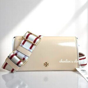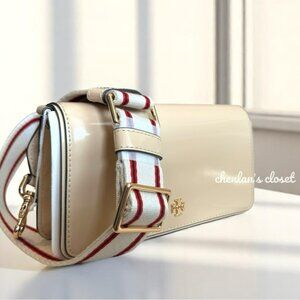 Tory Burch Emerson Patent Leather Crossbody With Canvas Strap Gold Hardware