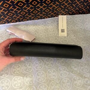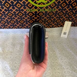 Tory Burch Emerson Wallet on a Chain Crossbody Bag Black Silver