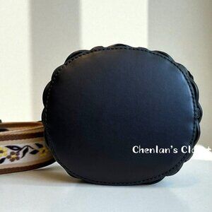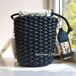 Tory Burch Emerson Woven Mini Bucket Bag Black With Gold Hardware