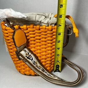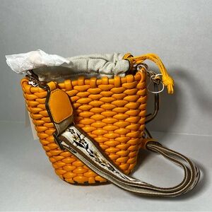 Tory Burch Emerson Woven Mini Bucket Bag Bright Squash