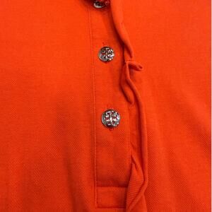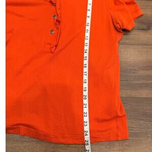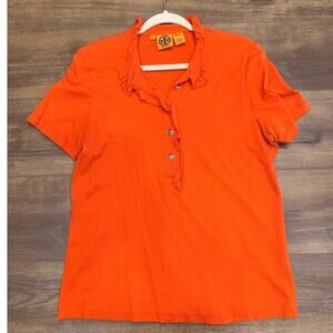 Tory Burch Emily Ruffled Polo in Coral Orange size XL