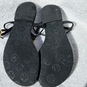 Tory Burch Emmy Black Leather Gold Medallion Thong Slingback Sandal Shoe…