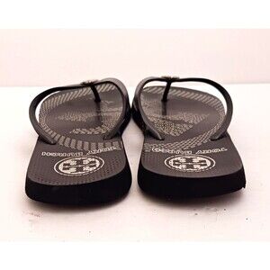 Tory Burch Emory Thong Flips Flops Blk/White Silver Logo 1/2" Straps Sz 8