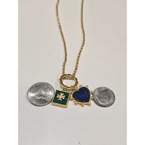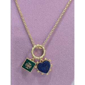Tory Burch Enamel Blue Heart&Green Square Logo Pendants Necklace *NWOT MSRP=$148