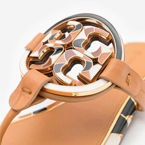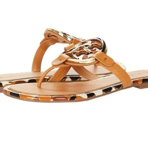 Tory Burch Enamel Miller Leather Thong Sandals Elba Camello size 6,5M. NWOT