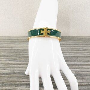 Tory Burch Enameled Kira Logo Hinged Bracelet Gold/ Green OS