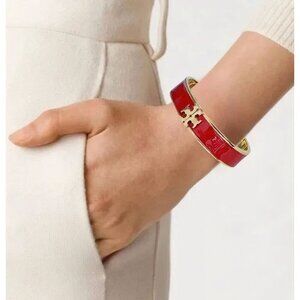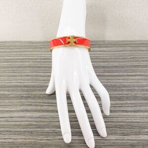 Tory Burch Enameled Kira Logo Hinged Bracelet Gold/ Red OS