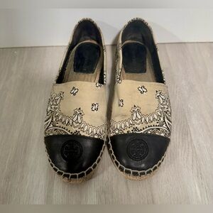 Tory Burch Espadrilky Color Block Flat Espadrille White/Black Size 7.5