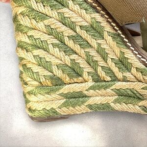 Tory Burch Espadrille Linley Wedge Sandals Brown Canvas with Green/Tan Jute 8M