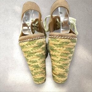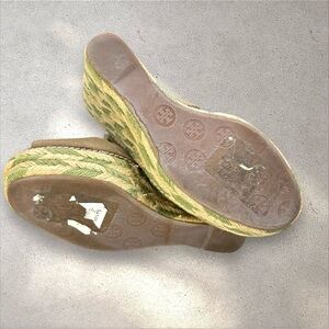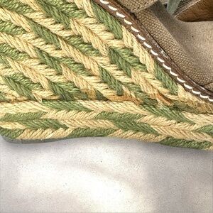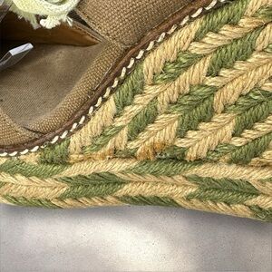 Tory Burch Espadrille Linley Wedge Sandals Brown Canvas with Green/Tan Jute 8M