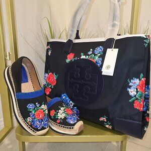 Women's Tory Burch Espadrilles, size 8.5 shoes in pristine condition. Also has brand new matching Tote Bag which is being sold separately.