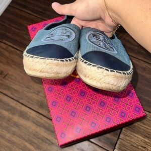 Tory Burch Espadrilles denim leather cap toe flats loafers platforms
