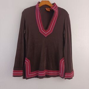 Tory Burch Espresso & Raspberry Stripe Terry Cloth Resort Tunic Beach Swim XS