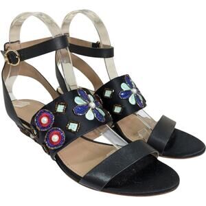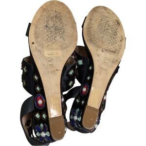 Tory Burch Estella Sandals 7.5 Crystal Embellished Leather Wedge Ankle Strap