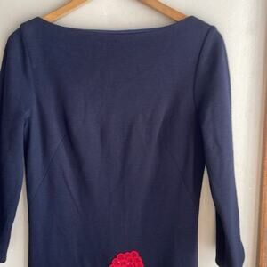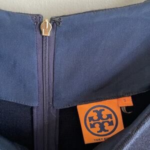 The Tory Burch Etta dress is cut from trend-perfect navy knit, and finished with bright embellishments on the skirt for a playful finish.