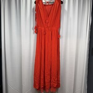 Tory Burch Evalene Maxi Dress Poppy Red Crepe Strappy Ties Gown Lined Size 12 L