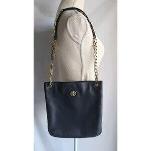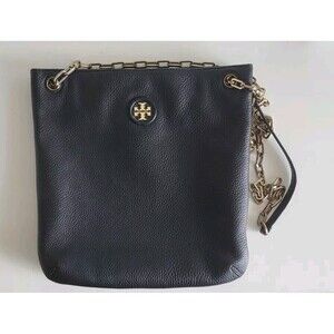 Tory Burch Everly Black Leather Swingpack Crossbody Bag Gold Chain Shoulder Bag