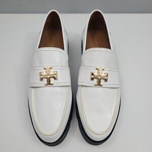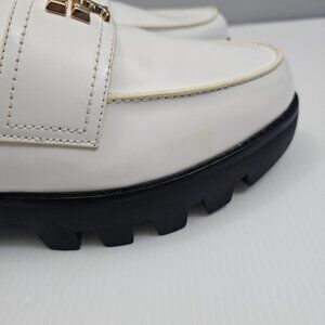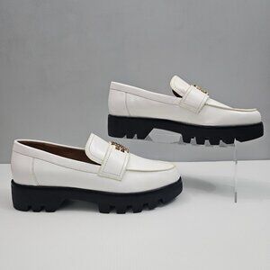 Tory Burch Everly Mini Loafer Womens 10.5 White Leather Chunky Platform Lug Sole