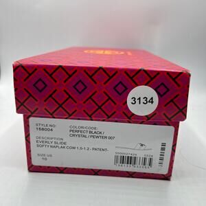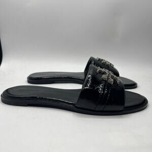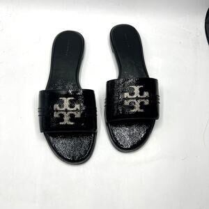 Tory Burch Womens Everly Slide Softy Naplak Cow Perfect Black/Crystal Size 10 NEW