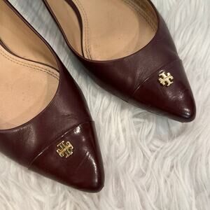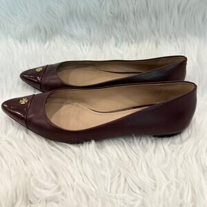Tory Burch Fairfield Flats Leather Pointed Toe Gold T Logo Shoes Captoe Burgundy