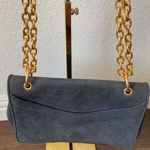 Tory Burch Features chain/ leather strap, pockets and gold hardware. Interior is lined with a fine textile and a brand logo.