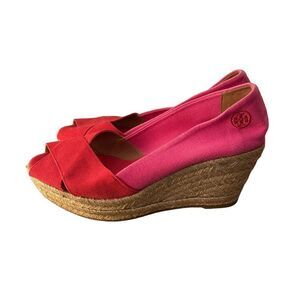 Tory Burch Filipa Colorblock Espadrilles Pink Red Wedge Heel Size 10