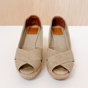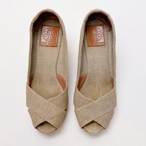 Tory Burch Filipa Linen Espadrille Peep Toe Wedge Heels