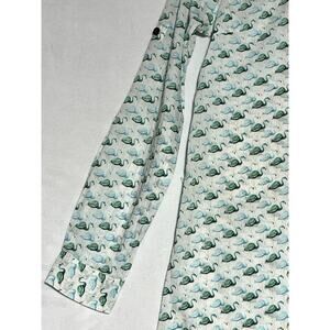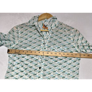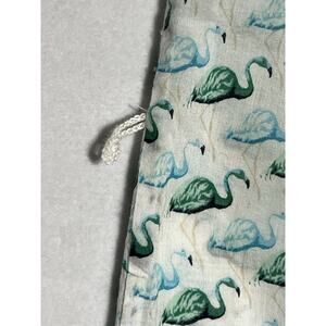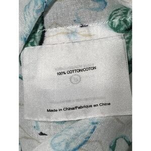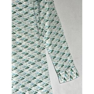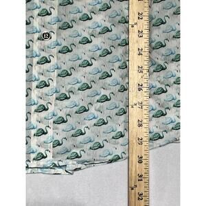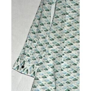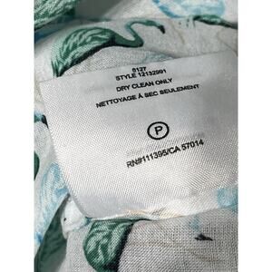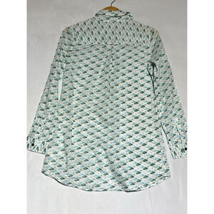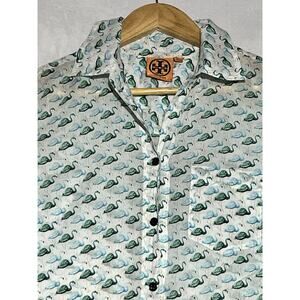 Tory Burch Flamingo Shirt Womens XS White Green Button Up Roll Tab Lightweight
