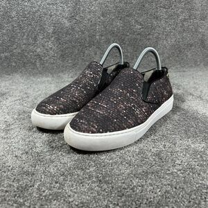 The Tory Burch Flash Allover Womens Size 8 M Black Casual Flat Slip On Shoes are a stylish and comfortable option for casual wear. These slip-on shoes feature a low heel height, making them perfect for all-day wear. The black color and shiny theme add a touch of sophistication to the design, while the fabric upper material ensures durability. Ideal for travel, casual outings, walking, or for school, these shoes are versatile and practical for any season.
