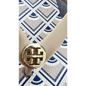 Perfect for any occasion, these sandals feature a metal theme gold logo .The accents of the strap add a unique touch to the overall design and are sure to make any outfit pop. From the brand Tory Burch, these shoes are perfect for any luxury fashion-forward woman. Get ready to step out in style with these statement-making sandals.