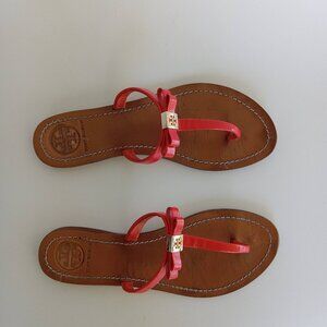 Tory Burch Flat Patent Leather Thong Sandals Women Flip Flop Orange Logo US 7.5