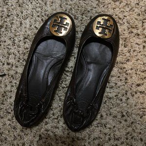 Chocolate Brown Tory Burch Flats with Gold Hardware. Kept very nice!